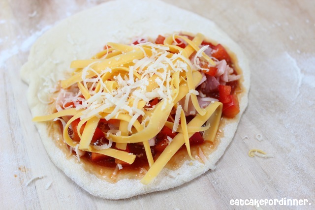 Jenn's Notes: I recommend filling the pockets a little fuller than you think with toppings, because it won't seem like as much after they are baked. You can use the traditional toppings for pizza or you could create a gourmet style like cheeseburger, taco, BBQ chicken or chicken alfredo.